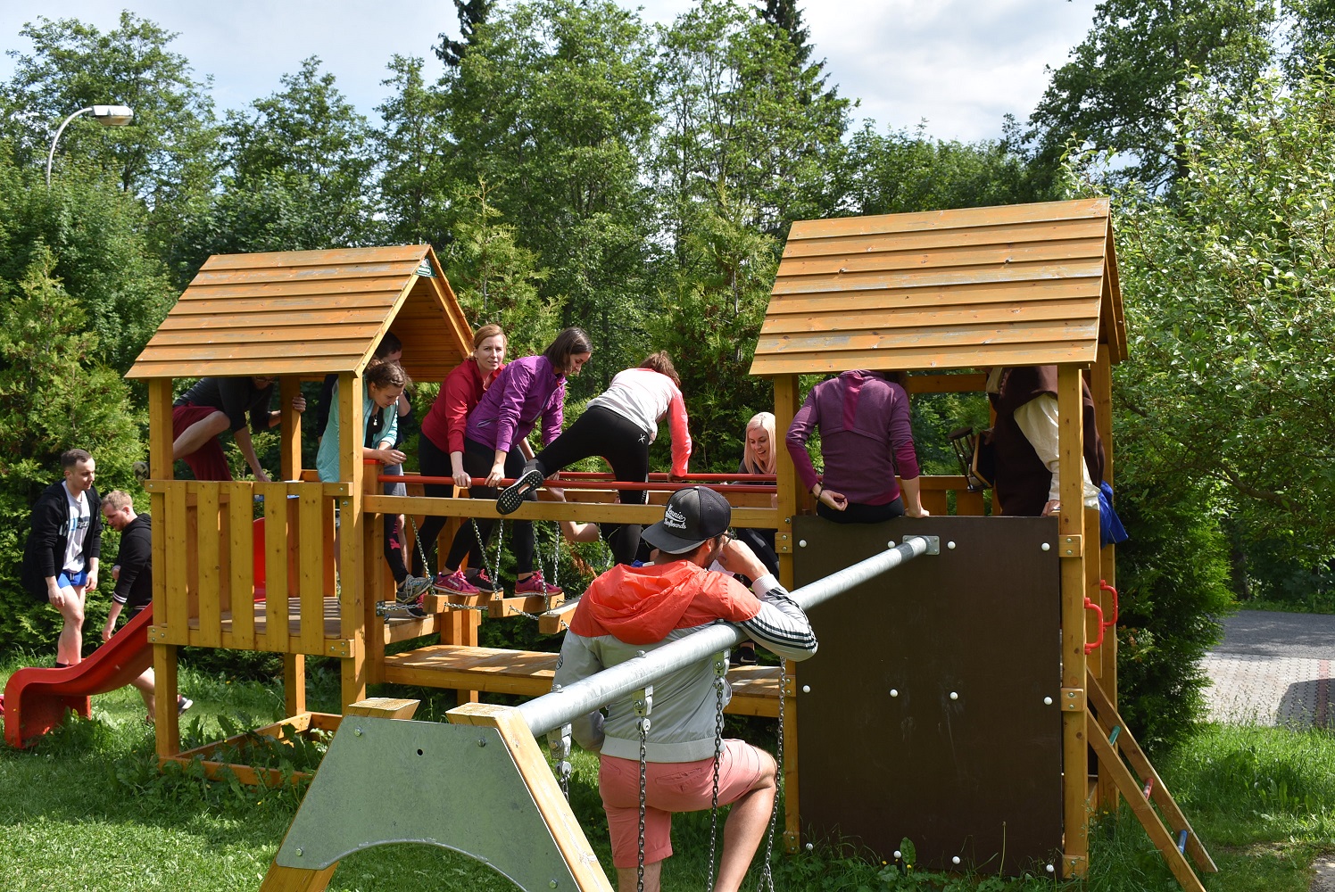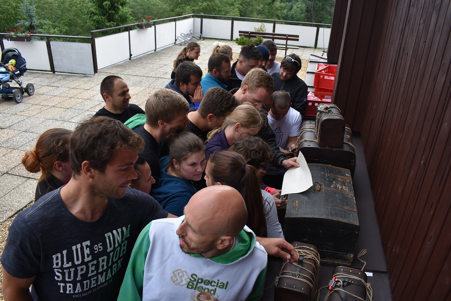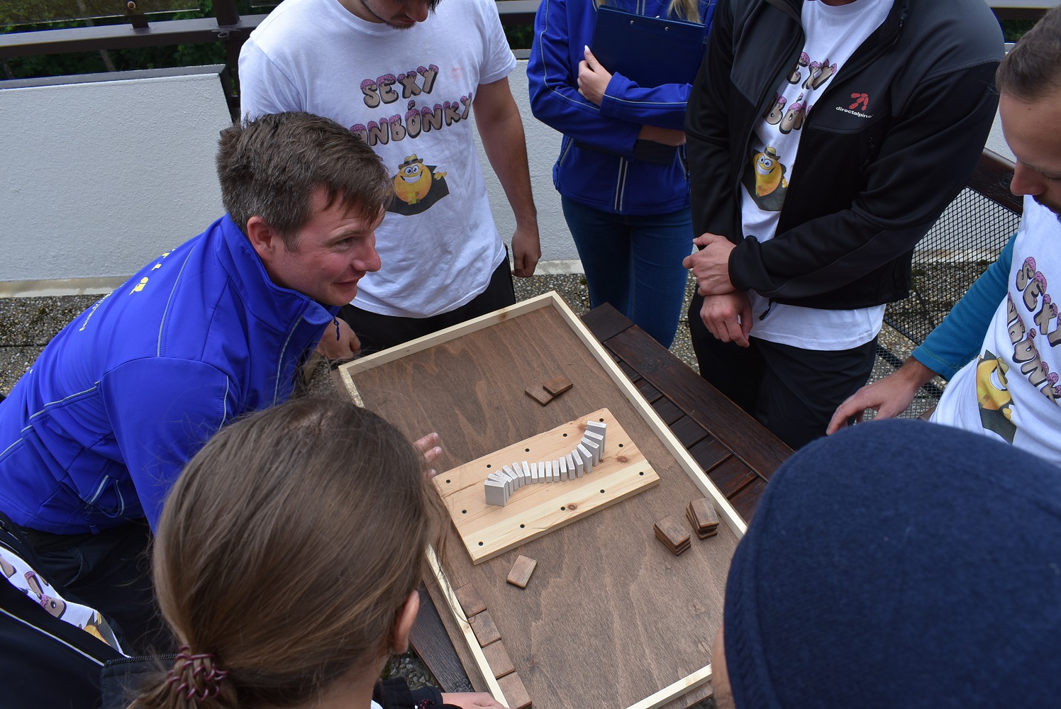 Po společném obědě jsme se již všichni těšili na odpolední sportovní akci – soutěž družstev s názvem Pevnost Boyard, při které bylo úkolem jednotlivých týmů projít nejrůznější stanoviště, plnit různé úkoly, získávat body a hlavně indicie, které vedly k rozluštění klíčového slova k truhle s pokladem. Někteří účastníci již tvoří stabilní družstva již několik let, a že neberou hru na lehkou váhu, potvrdili i přípravou dresů a týmových triček. Strávili jsme společně velmi příjemné odpoledne, kdy byl čas nejen na sportování, ale i na přátelské popovídání, spolupráci při plnění úkolů a seznámení s novými kolegy. A i když o výsledek až tak nešlo, všichni bojovali s plným nasazením a báječně jsme si to užili.