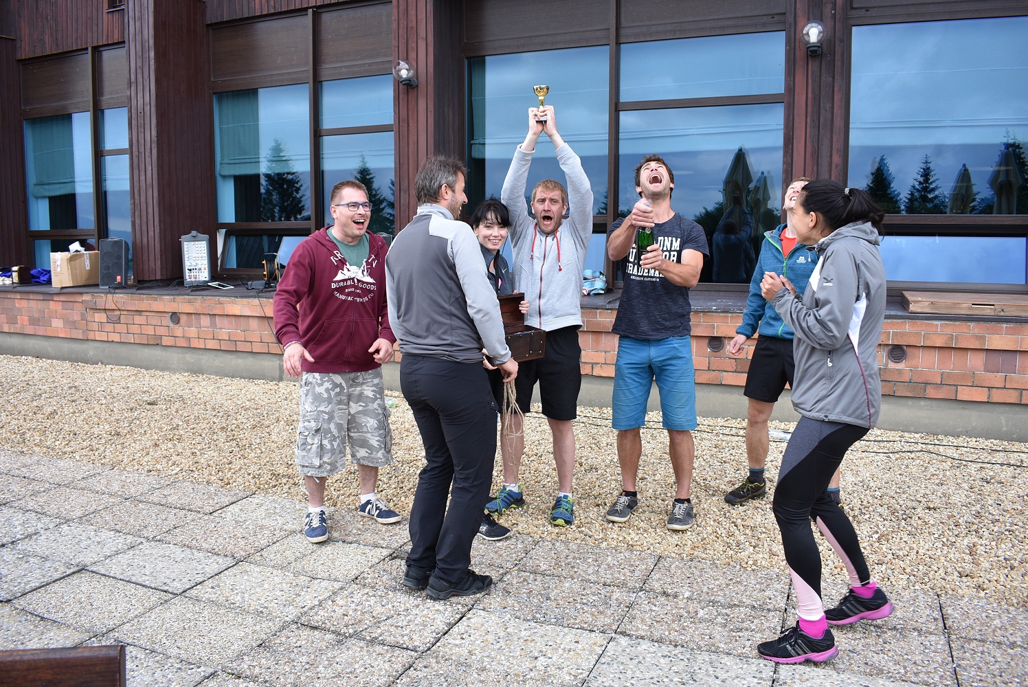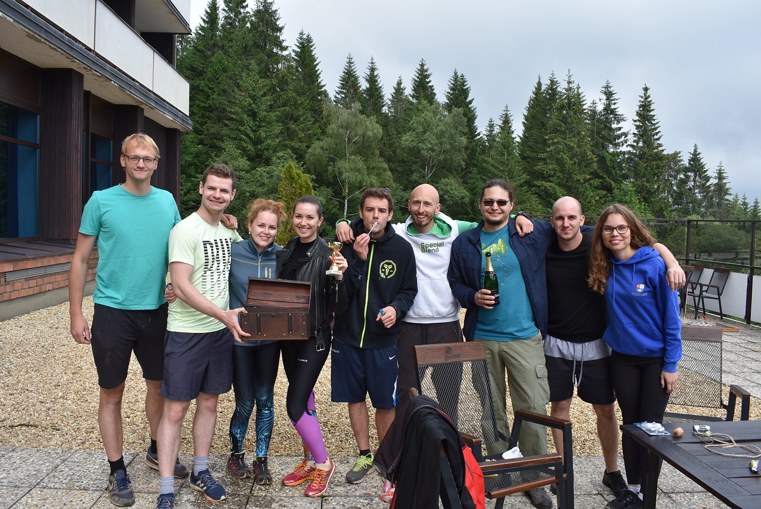 Závěrečný sobotní večírek po celkově náročném dvoudenním (pro některé tentokrát třídenním) programu byl určen nejen pro rekapitulaci výsledků sportovního odpoledne. Zajímavým zpestřením byla noční bojová hra, při které šlo o hledání největší truhly s pokladem ukryté v okolních šumavských hvozdech. Nutno podotknout, že ani chladno a vytrvalý déšť neodradil mladé kolegy, aby se s nadšením vrhli do temného lesa. Úspěšní hledači se s truhlou brzy objevili, ale spokojení a nadšení byli všichni. Tímto veselým večerem jsme zakončili velmi příjemný společný víkend a již se moc těšíme na příští setkání, které se bude konat opět v krásném horském prostředí, tentokrát v hotelu Horal ve Špindlerově Mlýně.