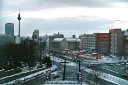 Počasí v půlce dubna připomínalo spíše zimní měsíce. Ze svého překvapivě klidného hotelového pokoje jsem měl výhled na Prenzlauer Alle a dominantu Berlína - der Fernsehturm.